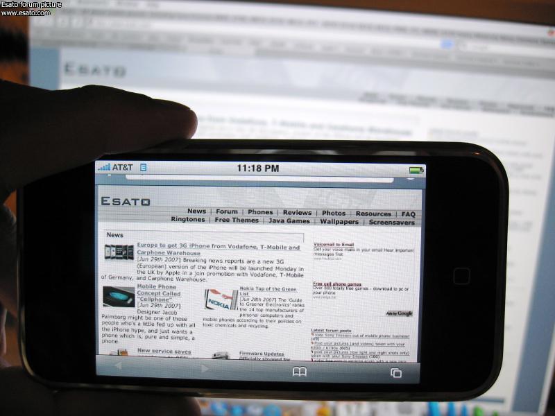Pic of my iPhone showing esato's home page,