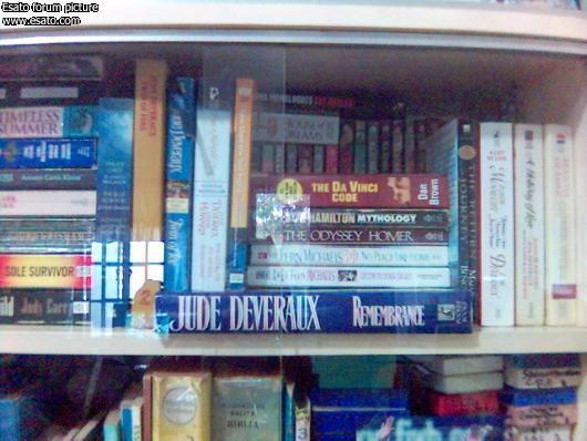 my bookshelf (just returned a book before bedtime)