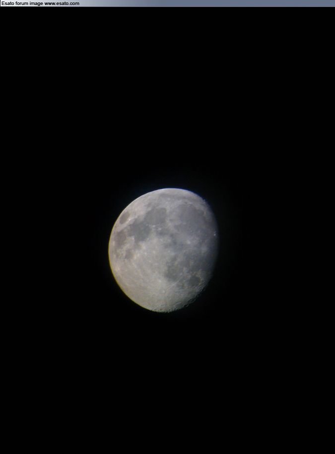 P1i macro mode pics taken through the telescope. It remains a difficult shot; to get the Moon focussed in through both the P1i's cam and the telescope's aperture, and then to avoid over-exposure from the reflection is not easy. Oh, and every minute or two, re-aligning the viewfinder as the Moon moves steadily on its orbit.. These 3 came out OK, after close to a dozen attempts...: