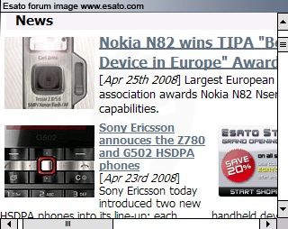 It would be nice to see how much the P1 with it's Opera Browser shows or the TyTN2 with either PIE or Opera for comparison so we can actually see just how well each device renders a Web Page and a difficult one like ESATO. Rather than just being told how great it is lets compare and actually see for ourselves shall we?