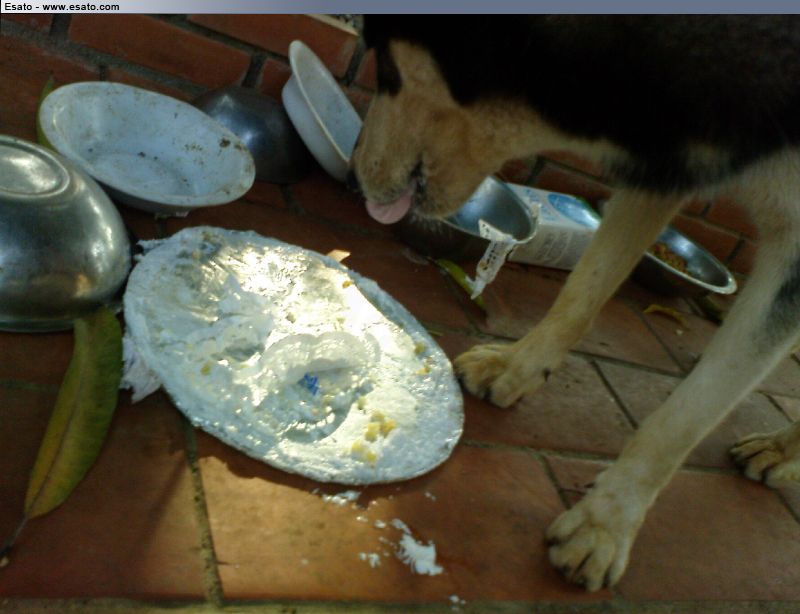 Robin entretenido con las sobras del bizcocho: