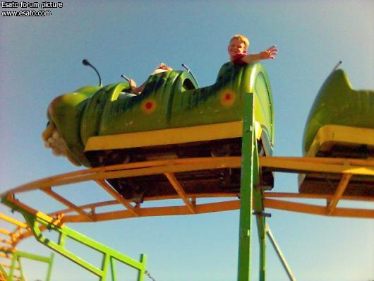 My son riding a rollercoaster.