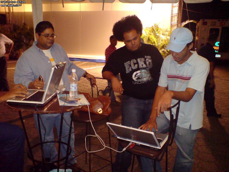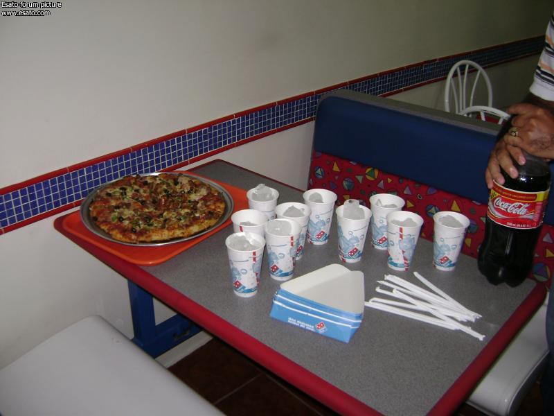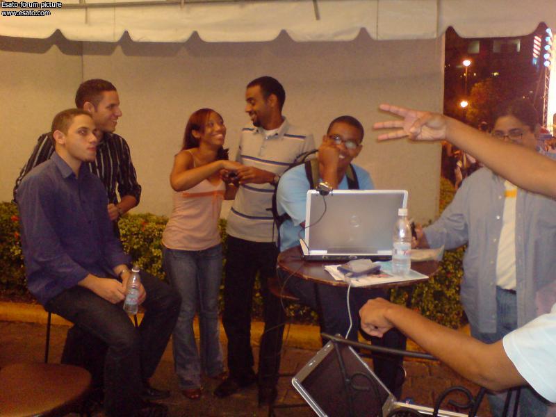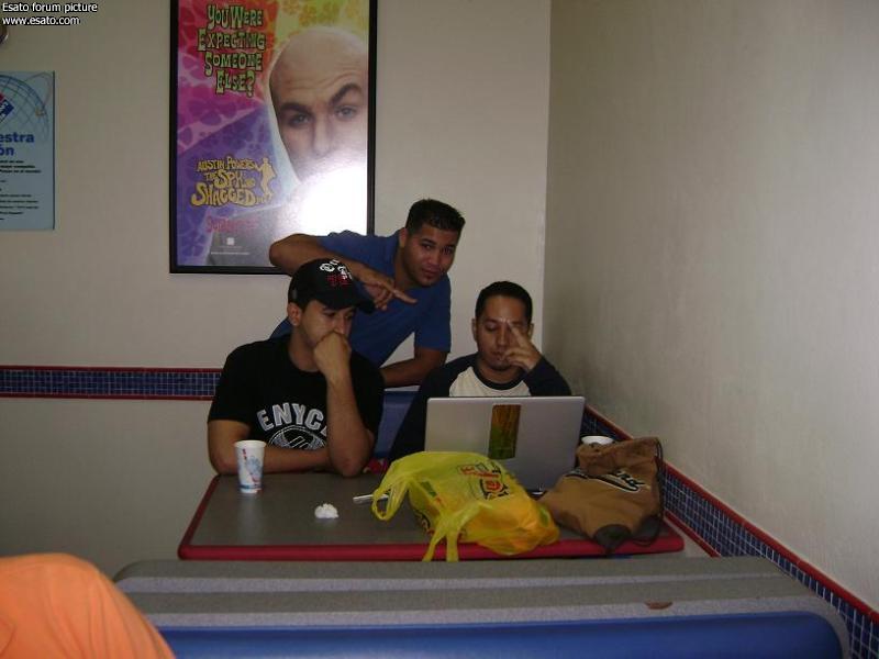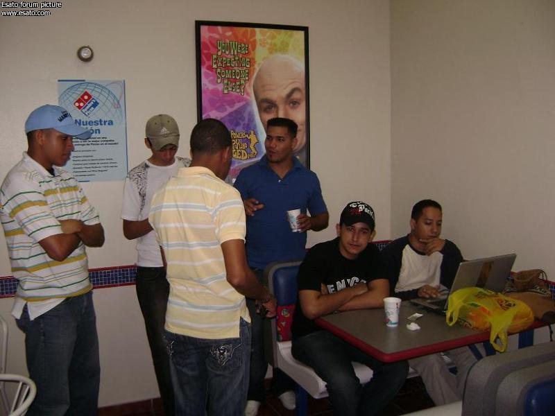 The ov: jajaja, el Ovni #1 reportándose, hola OV. La reunión por acá en Santo Domingo se dio muy bien, aunk al principio dimos par de vueltas buscando una conexión inalambrica, hasta que nos refugiamos en la Ruta Hipotecaria del popular, al final de la jornada se nos ocurrió la mala idea de ir a comprar una pizza ¨grande¨ en acropolis, en esa pizza nos cobraron la entrada, la salida, el aire, y la vista de la plaza. jajajajjaja.