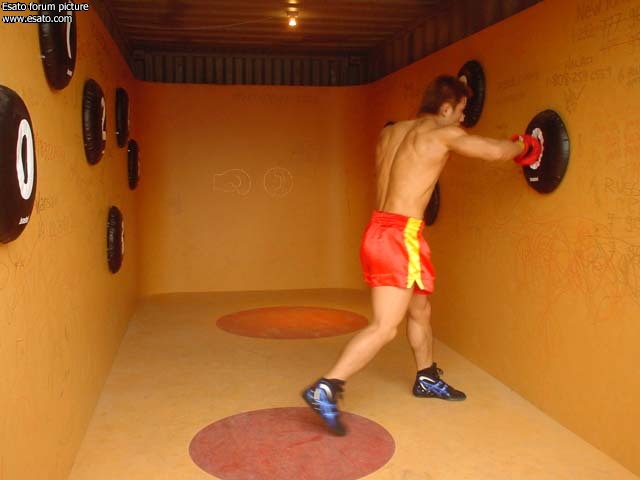 In a 20ft container, 10 boxing ball-like buttons are attached to the walls. In order to make a phone call, one puts on boxing gloves and hits the buttons to dial a number.