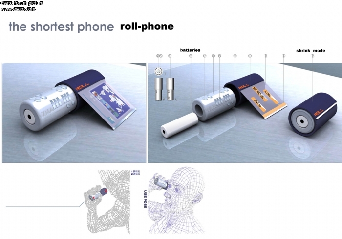 The shortest roll phone, a concept phone designed by Tao Ma.