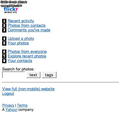 Nope, can't see it. I've looked on the main page where it asks to sign in, and also on the main page once I'm signed in. As the tree said to the lumberjack, I'm stumped. Any chance you could put up a screencap of where this mobile option is? I could only find it through a Google search (m.flicker.com). Sorry to be a pain! |