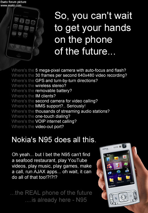 No touch screen isnt a drawback for N95. I'd like to see a "real" review and see how the iphone touch screen is. |