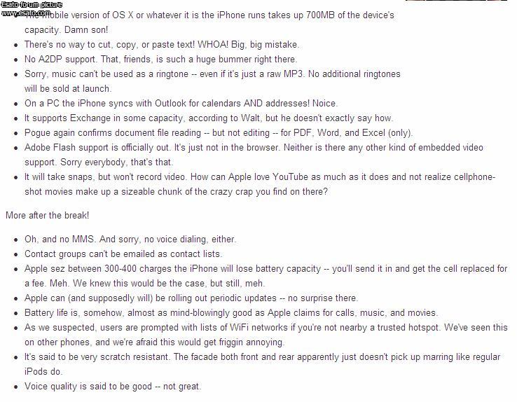Some negative points of the iphone from engadget