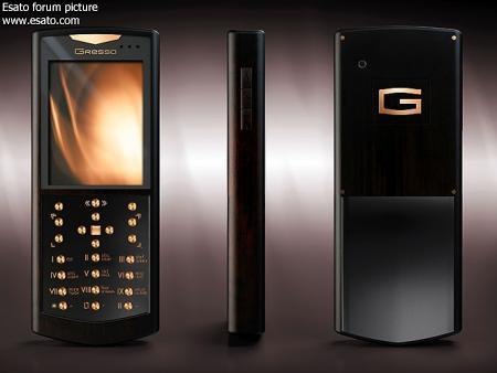 front panel is embellished by a triangle inset of Gold – one of the special aspects of all Gresso mobile phones.