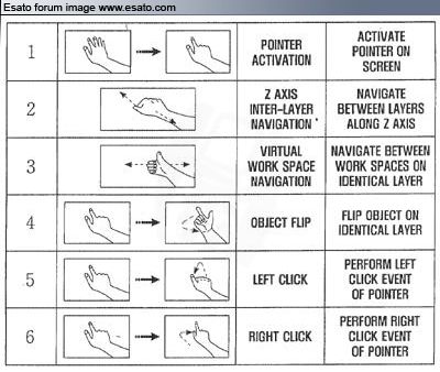 "Samsung has patented a system of cellphone and mobile device control that responds to a users gestures, not on the screen as with the multitouch iPhone but as recognised in the space around the handset. Using the cellphone’s front-mounted camera, the software recognises preset motions and translates them into on-screen control. For instance, pointing at the screen and then moving the finger could control a mouse or cursor, while rotating the wrist with the hand outstretched might flip an image or layer."