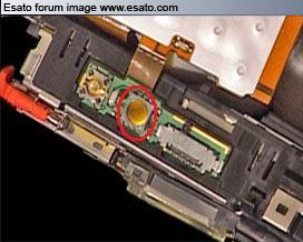 When I opened the case to see if I can fix it by myself, under the button I saw only one tiny metal plate with a hole in the center, that fit exactly in that location.