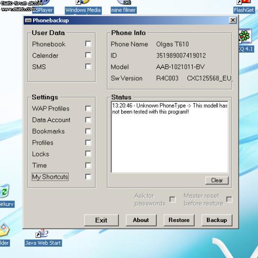 But I'm still trying to find software that allows me to save SMS messages, the phone book and so on, on the PC.
