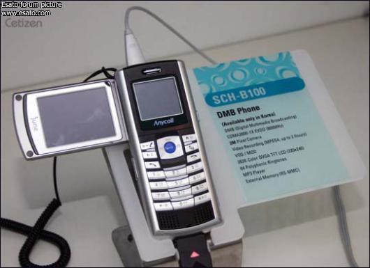 Satellite DMB phone(model name: SCH-B100) introduced by Samsung Electronics is CDMA2000 1x EV-DO model embedded with 2 mega-pixel camera, and it plays VOD and records satellite broadcasting. Samsung Electronics plans to hold an event to officially demonstrate its performance with TU Media, satellite DMB service provider.