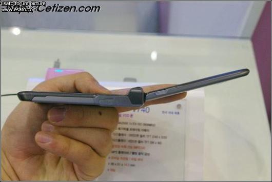 Samsung today took the wraps off their ultra-thin answer to the RAZR at a Korean wireless expo. The SCH-V740 is a 14.5 mm thick CDMA clamshell for the Korean market. The handset features Bluetooth, a 1.3 Megapixel camera and 176 x 220 internal screen. It also has advanced software features such as mp3 playback with play controls on the outside of the flip as well as file viewer software. The phone is expected to compete with the CDMA RAZR, which Motorola will launch in Korea next month.
