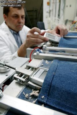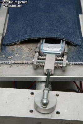 Jeans Test: In the course of the jeans test,Siemens handsets are placed in a pocket several thousand times. In addition to withstanding the hard jeans fabric, the devices must be able to tolerate a mixture of dust, tobacco, fuzz and paper tissues in the Siemens test lab.