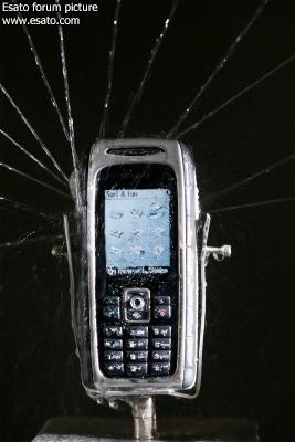 Splashwatertest:Especially robust and stabile:the M75 outdoor mobile, for example, from Siemens is sprinkled with water from three different directions for a period of one minute.Outdoor mobile phones are also subjected to special tests.