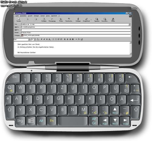 There is something fishy about this device. It is just a copy of the Nokia Communicators in its form factor. But the big problem is so obvious. I claims to be Linux, but there is a huge windows logo right there on the keyboard. Also if you look closely at the "screen shot" the thinly veiled copy of Outlook express has the windows progress throbber in the top right.