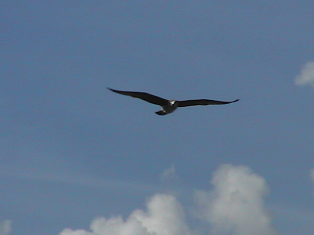 Flying over the clouds? No, the sea-gull was flying 10 metres over Rio São João! This digital image 'weighed' only 68.5KB....1/14th. of 1MP !