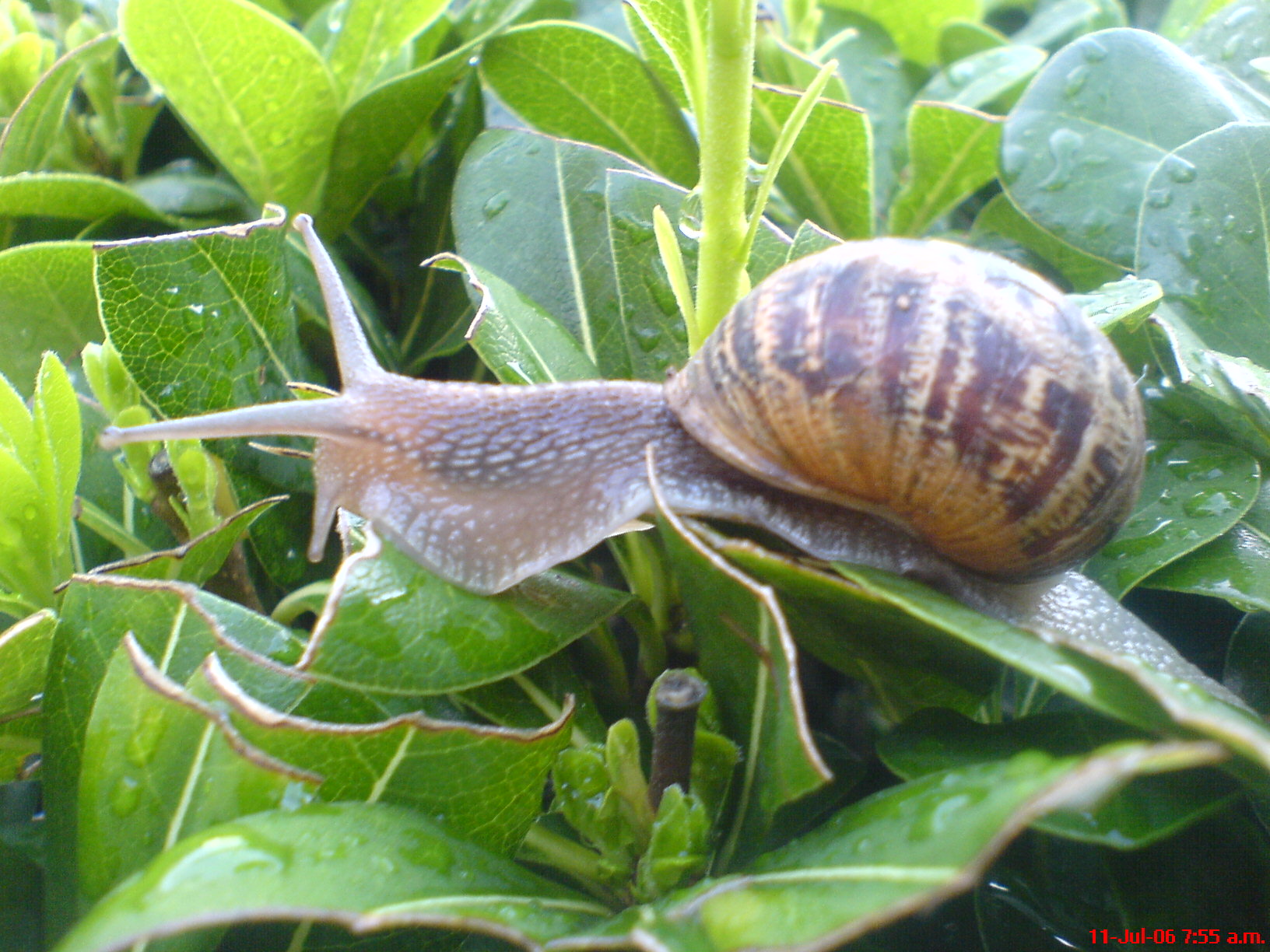 Owner commentscaracol entre las plantas una maņana lluviosa.