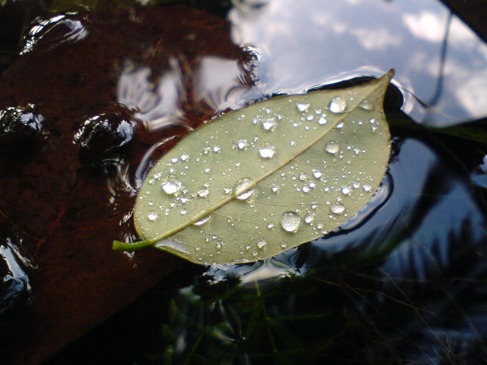 Drops take a free ride on a leaf.......